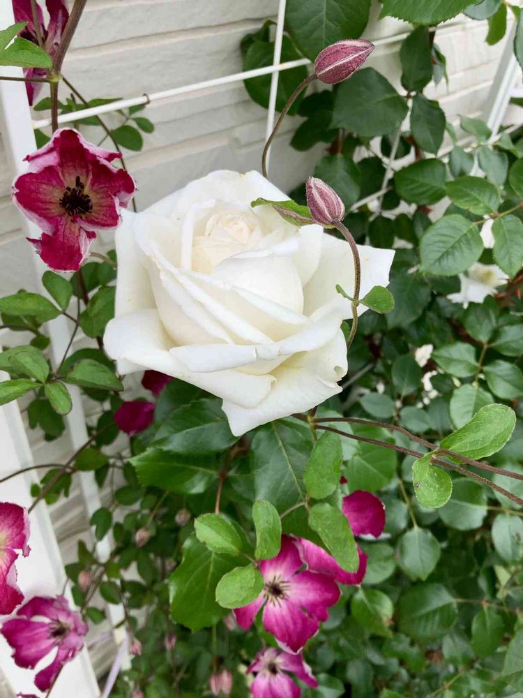 すごく美人に咲いてるし、またこのクレマチスの赤紫?!(ほんと色も形も👍)