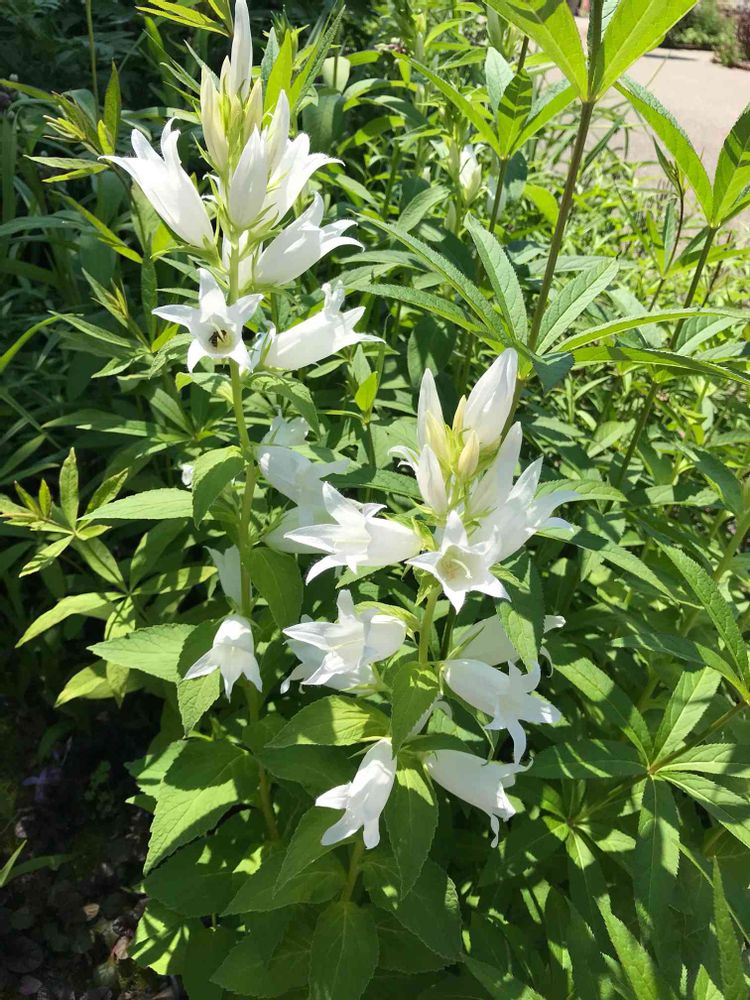 コンパニオンプランツとして植えられていたカンパニュラorホタルブクロの仲間だと思います☺️