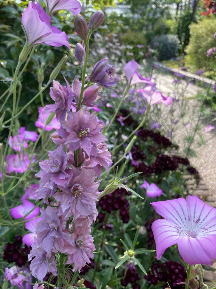 5/12公園にてお散歩中。こんなスモーキーなピンク色の千鳥草もあるんですね💗