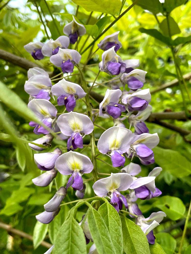 まだ余り大きくない藤の木に垂れ下がり綺麗に咲いてましたよ💜🌿💜🌿