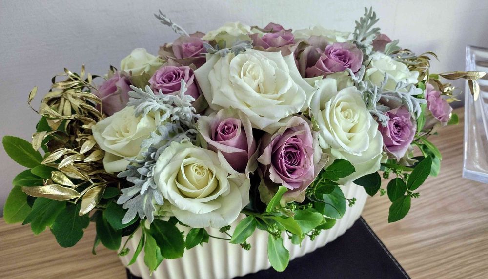 とっても素敵😍スモーキーピンク色の薔薇が、大人なアレンジでいい雰囲気❣️