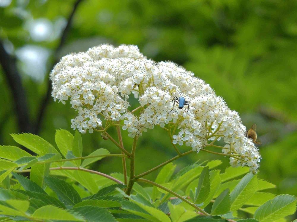 石川県白山市白峰、白山高山植物園にて、高明なるナナカマド。マルハナバチやら青い奴やらギャラリーにて出演です。