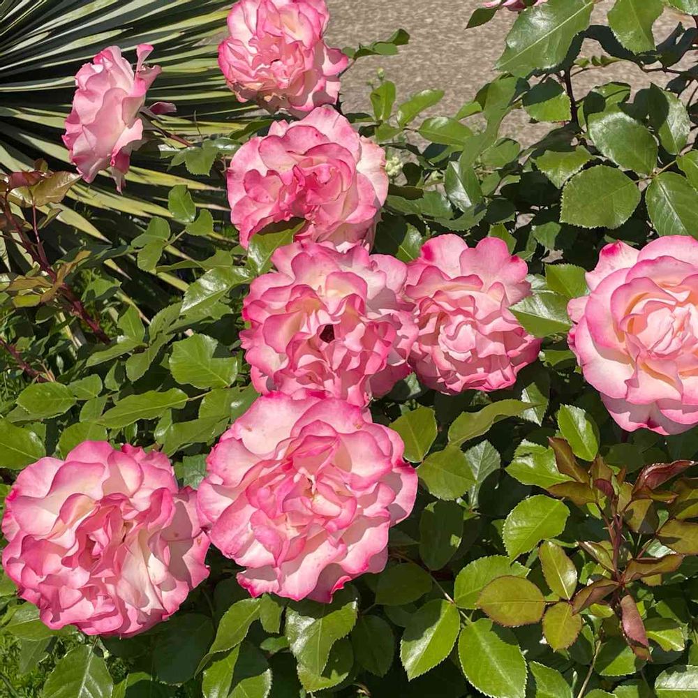 こんにちははじめまして😊ヒラヒラの花びらとニ色赤白が、交互にでててとても綺麗なバラですね~🩷💕
