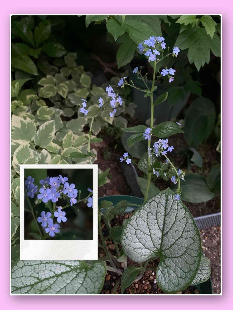 似てますね⤴︎わすれな草より花は小さいです♪この花の形のまま散るそうですよ♡落ちた花びらも可愛いはず🎵葉っぱもシルバーハートって可愛い名前ですよね。まさかのHCコメリで買ったんですよ⤴︎