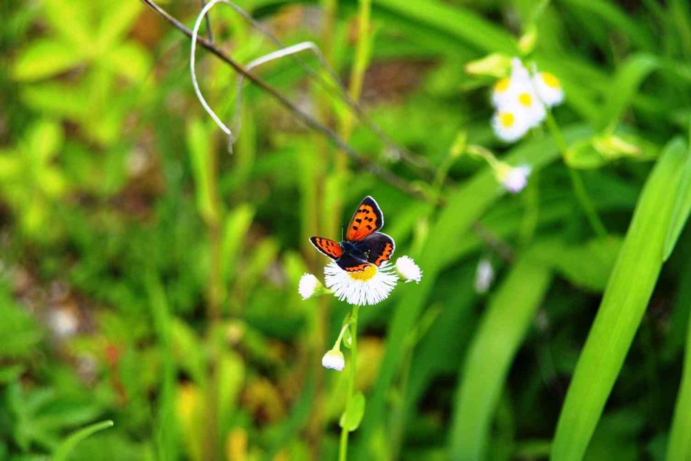 石川県白山市白峰、白山高山植物園にて、友人カメラからベニシジミ蝶とハルジオン?ヒメジョオン?です。