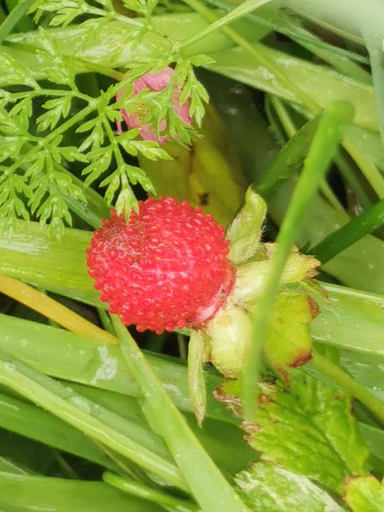 真っ赤なヘビイチゴが美味しそうでした。🍓