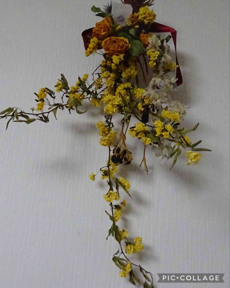 モッコウバラとミニバラ、とても良い色になりましたね。スワッグのバランスがとても素敵です💓