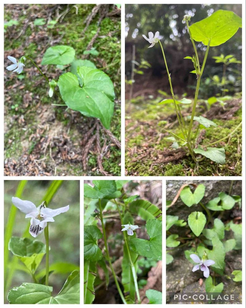 お寺に向かう山道で。ほとんどのスミレは終わったあとのようで、葉っぱだけでしたが、こちらの白いスミレだけ、ところどころでチラホラと見かけました☺️✨すーっと伸びた立ち姿も素敵💕