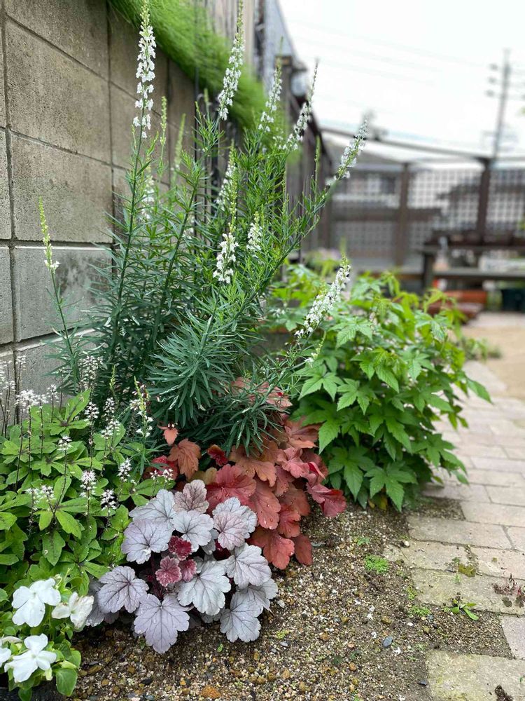 ヒューケラ2種はPWさんのもので日陰が好きなタイプのものを植えています😊