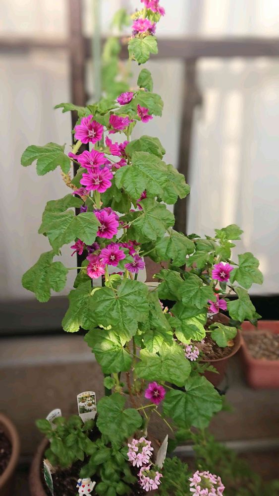 バルコニー/ベランダ,コモンマロウ(ウスベニアオイ),寄せ植えの投稿画像