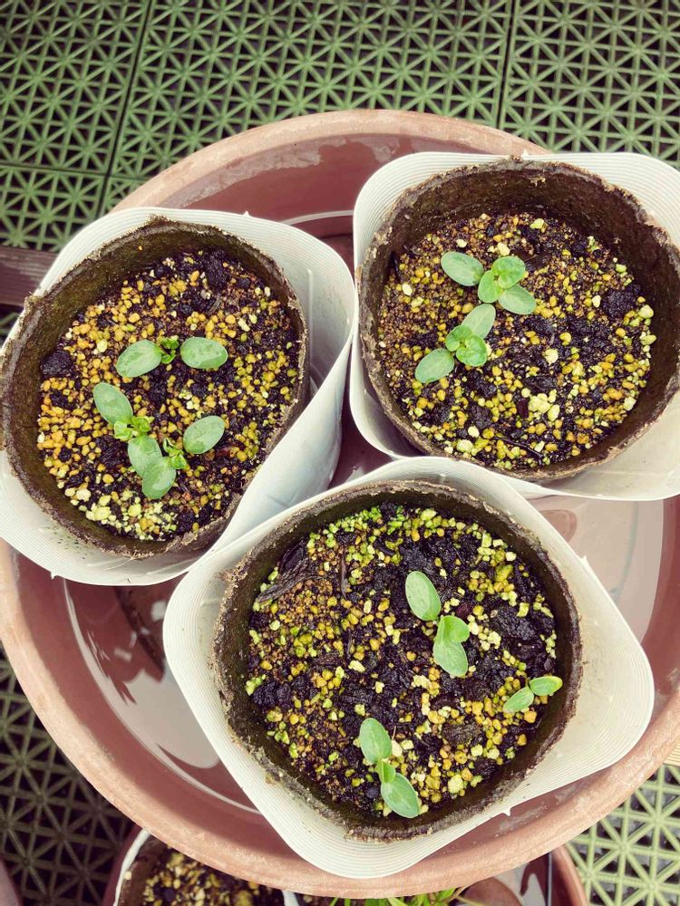雨ですね☔️去年 初めて取れたブルースターの種から 発芽しました 初めはダメかなーと思っていましたが ちゃんと 芽が出ました 楽しみです