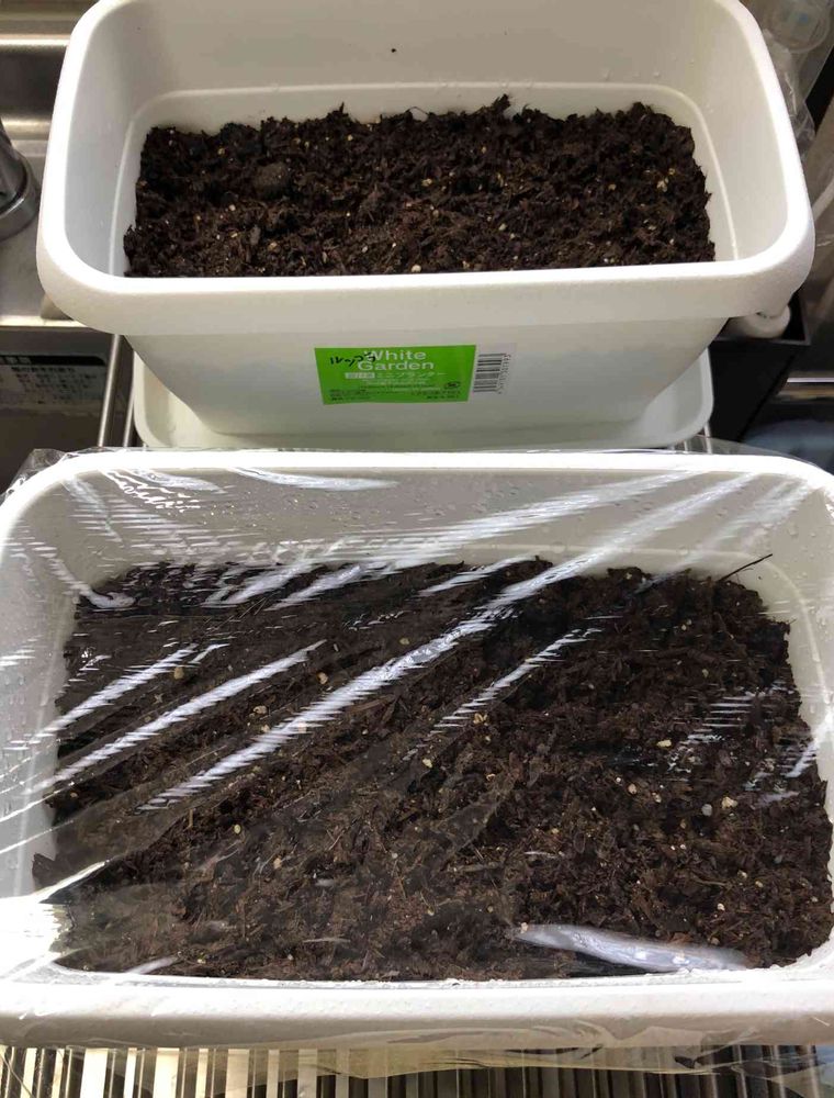 先に蒔いたバジルに肥料あげたらちょっと失敗したのでリベンジ。ついでにルッコラも。
