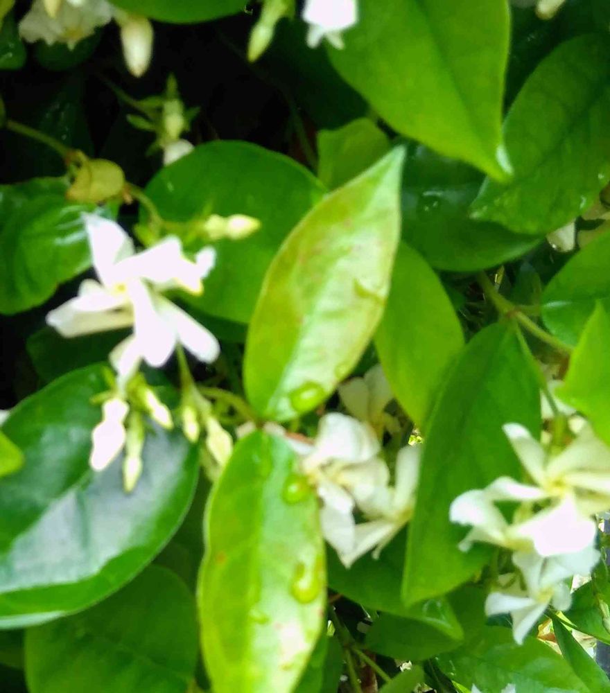 園主さんに聞いたらこれは葉っぱが斑入りじゃないのでハツユキカズラじゃなくテイカカズラですよと😲