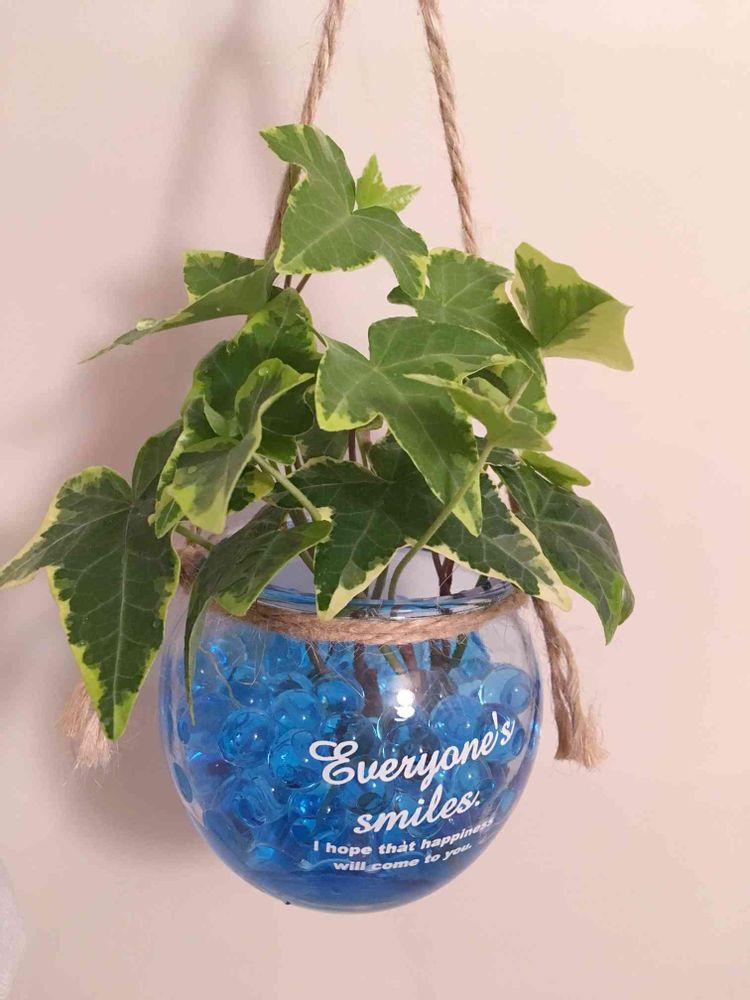 先日ユニディで買ってきたアイビーのハイドロ苗を、セリアの可愛いハンギングのガラス容器に植えました♪