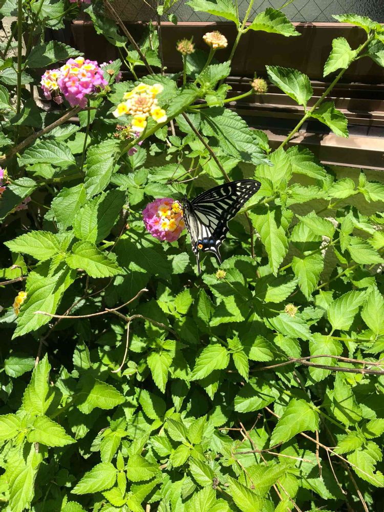 ランタナにアゲハが蜜を吸いに来ました🎶