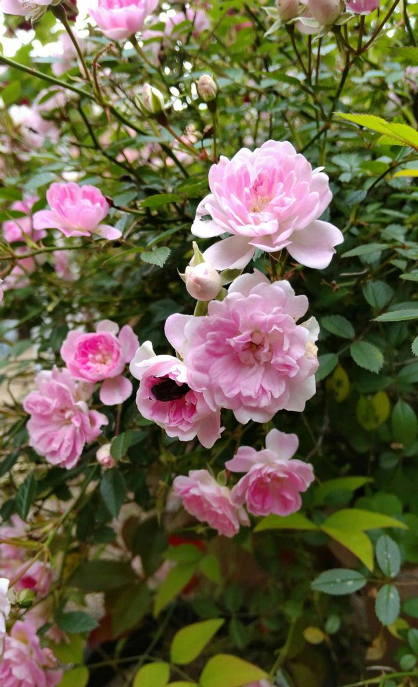 でも、近くで見ると ひとつに一匹虫が入ってて💦蜜を吸ってるのかと微笑ましく見てたら、花びらボロボロ💦