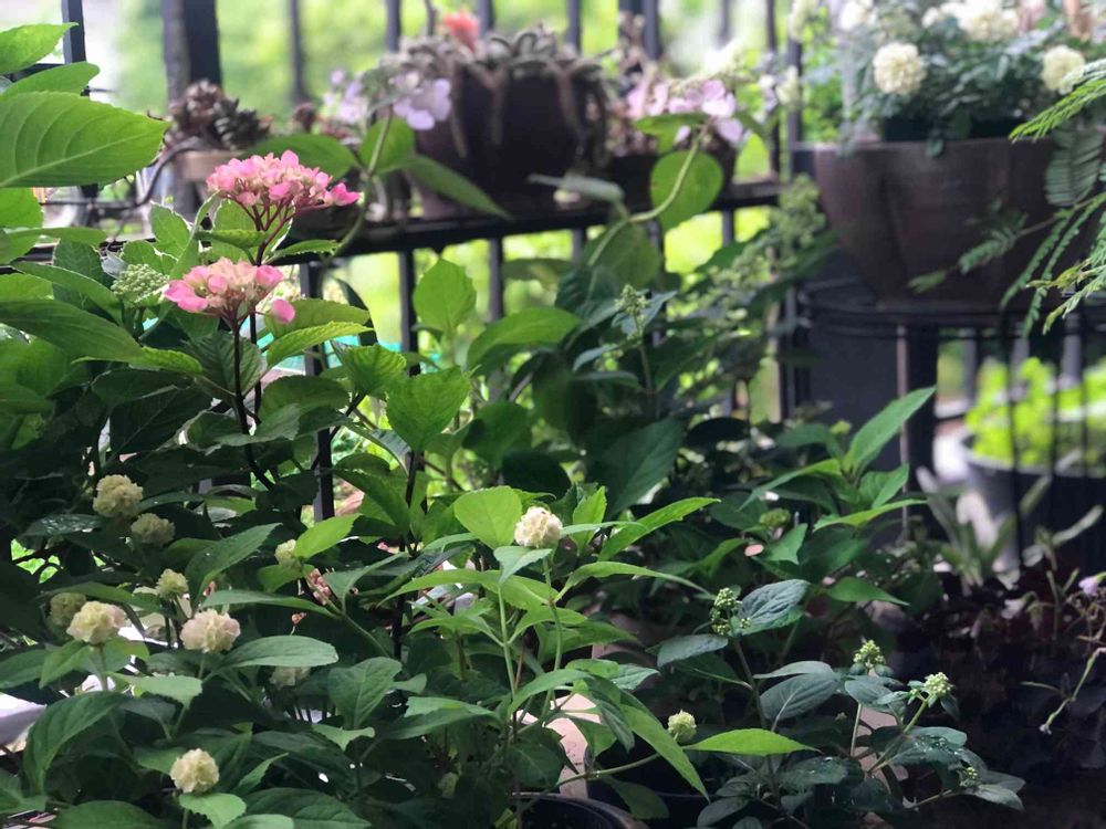 黒軸紫陽花は種類がわからないのだけど終わりかけのを安く買ったら殆ど根腐れしてて奇跡的に一本だけ生きながらえて2年目に花を咲かせてくれました。こんなにピンクに咲くとは思わなかった🌸