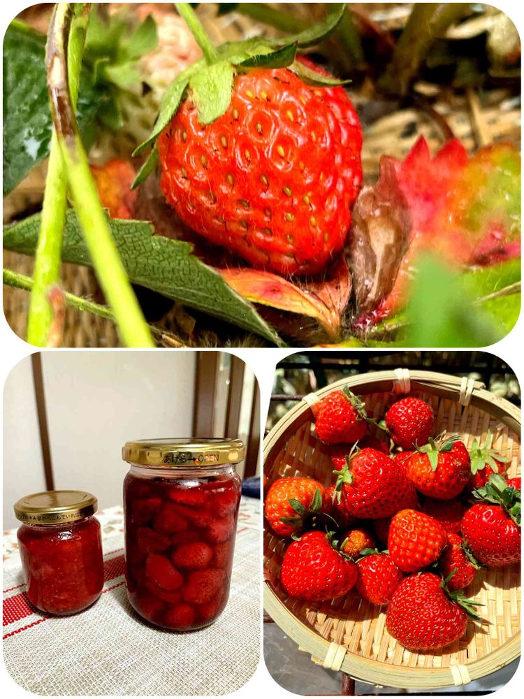 そして我が家でもほんのちょっとですがイチゴの収穫がありました(右下のpic)
