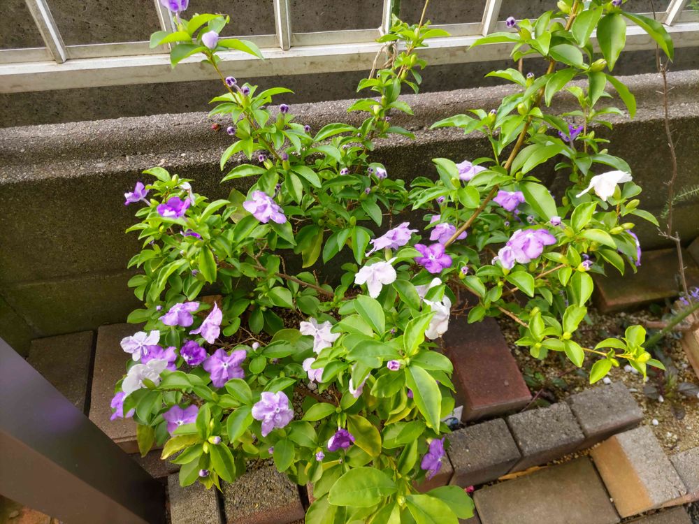 咲き始めの色は紫色で、少しずつ薄くなって最後は白色で終わります。少しずつ開花するので、このグラデーションの景色が良いわ〜。