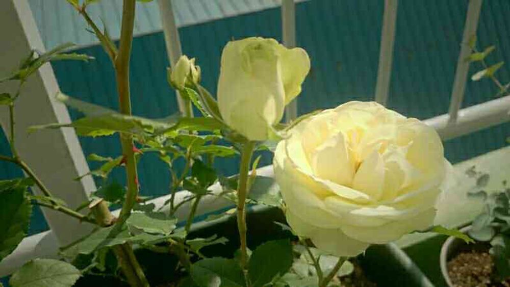 バルコニー/ベランダ,バラ クリーミーエデン,バラ 鉢植えの投稿画像