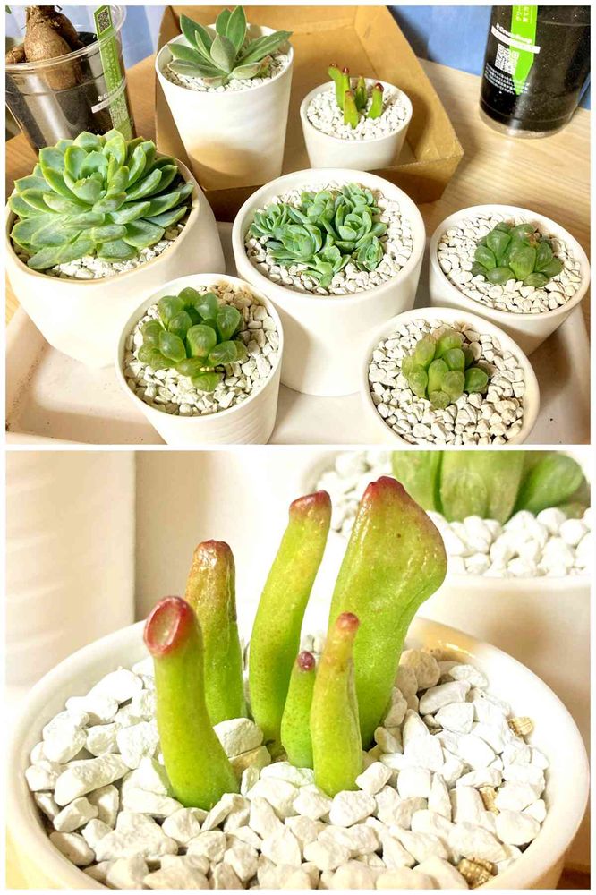 こちらも子株モリモリでデコボコになってたオブツーサの子株を株分け🪴