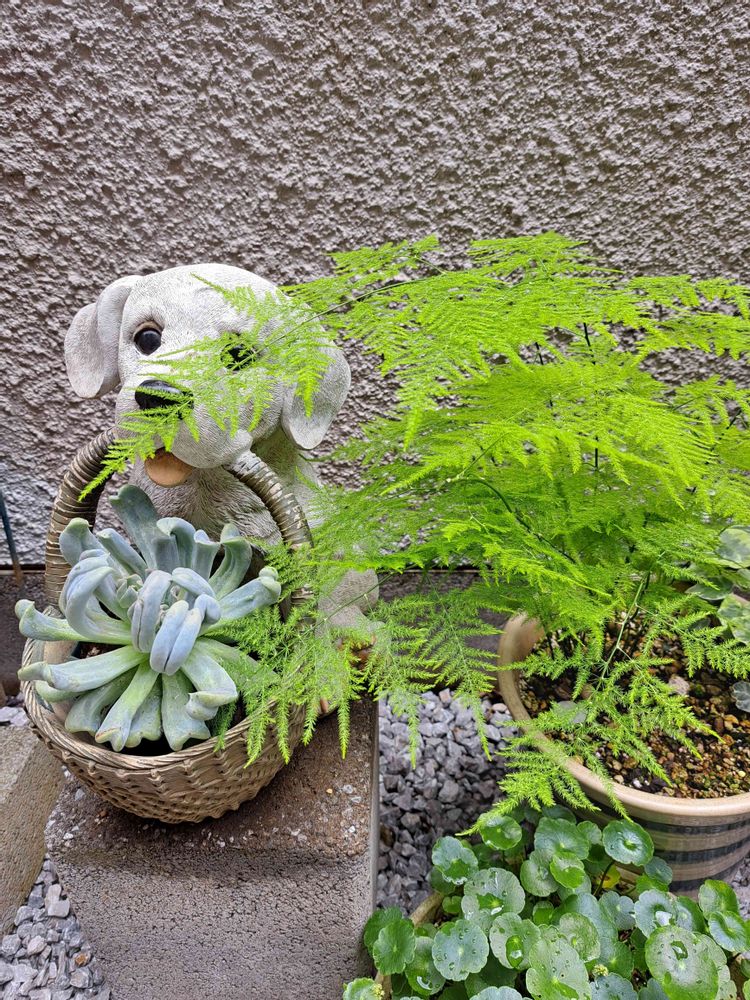 このワンの置物、母が塗り替えしてました90歳にもなるのに🤣