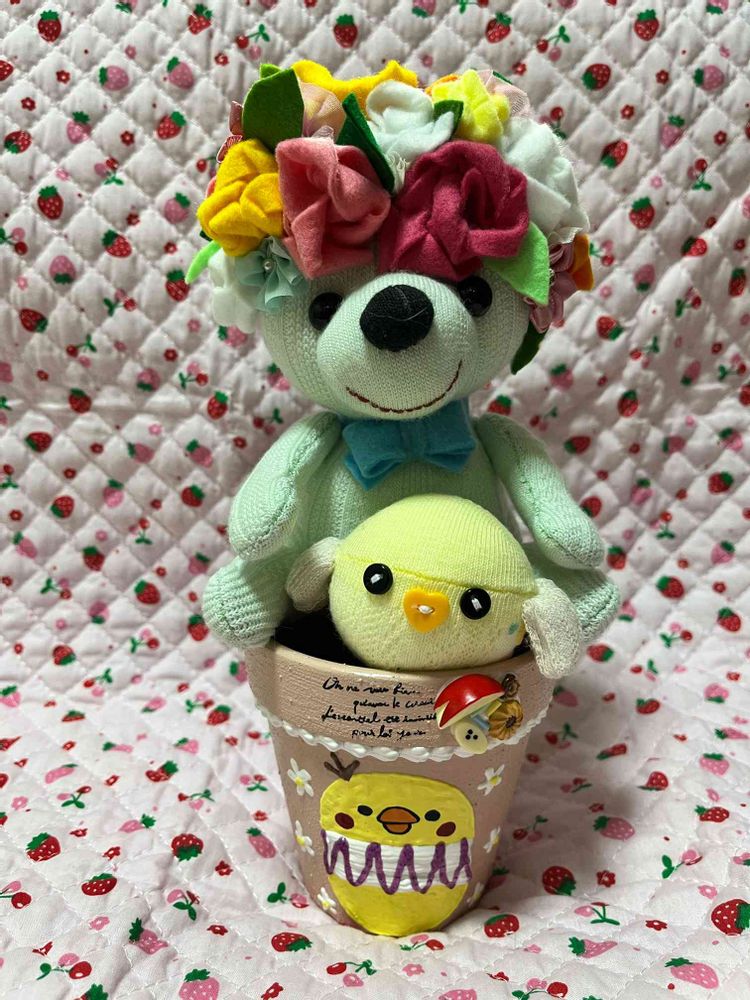 でも何も植えないのも寂しいかな…と悩んでガーデンベアとひよこを作ってみました😆ガーデンベアは花アフロだから植物よね😁👍もちろん非売品です🙇♀️