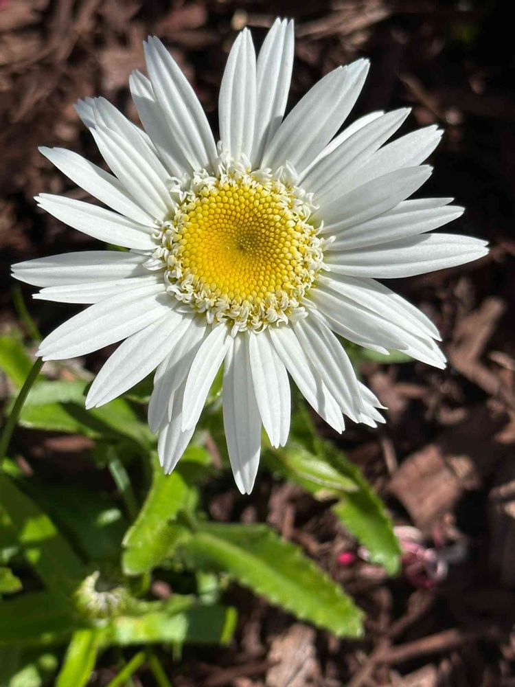 Leucanthemum maximum/Leucanthemum. Asteraceae. Asterales. Magnoliopsida. Tracheophyta Common name/Max chrysanthemum Commonly called/Shasta daisy Native to/France. Spain Symbolism/Purity. Innocence *Commonly called Shasta daisy, is a hybrid developted in the 1890s near snow covered Mt. Shasta in northern California. Photo 5/15 9:55am 2023