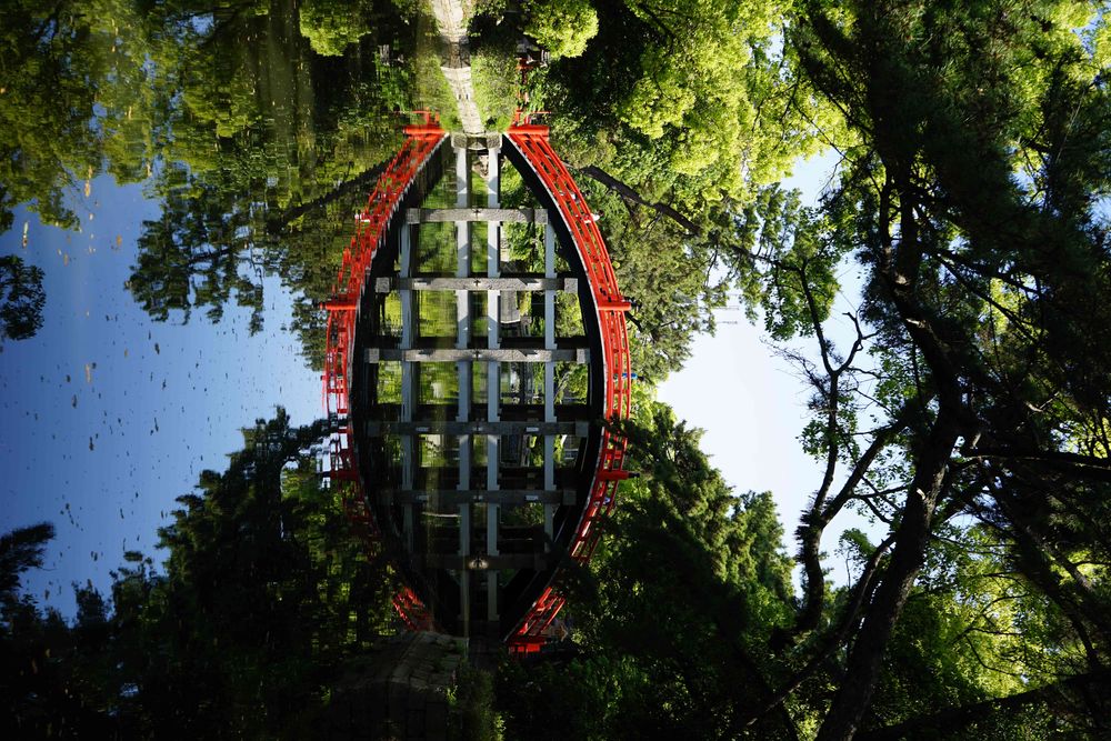 松など、たくさんの緑に囲まれた反橋が水鏡に映る。この様子を一度眺めてみたいと思っていました😄