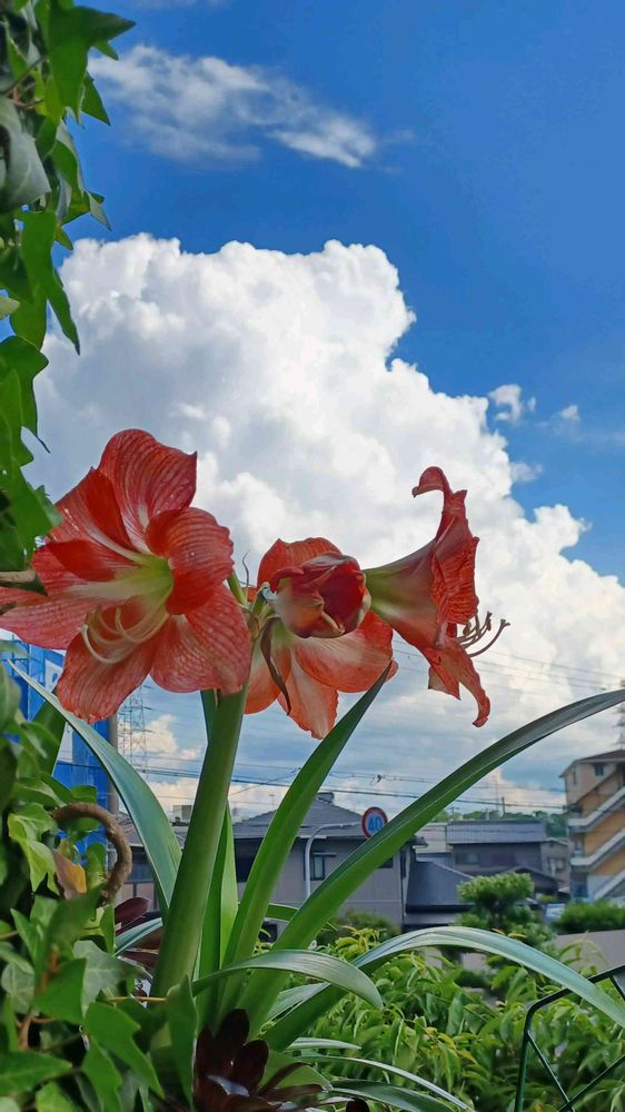 真夏のような空、くっきりとアマリリス♥♥♥素晴らしいですヽ(`▽´)/