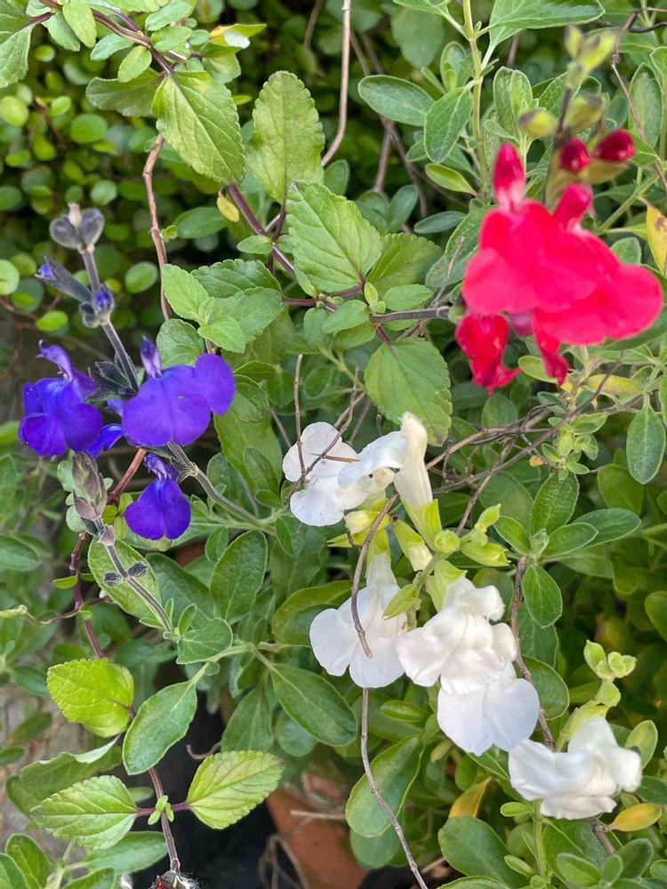 チェリーセージ3色同時に咲いています💜🤍❤️
