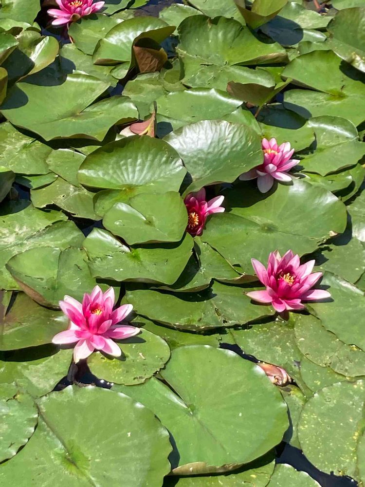 池の眺め、お花と葉っぱ、しばらく眺めていました( ˊᵕˋ* )