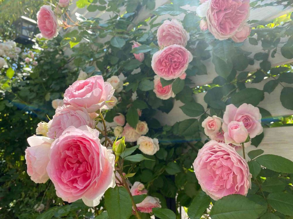 まだフェンス上部までは行っていませんが、やっと見応えがある感じに育ってきました💕良いとこ撮りしてますので庭には残念なところも沢山です🤣なかなか思うようにはいきませんが、それも楽しいですね🎶