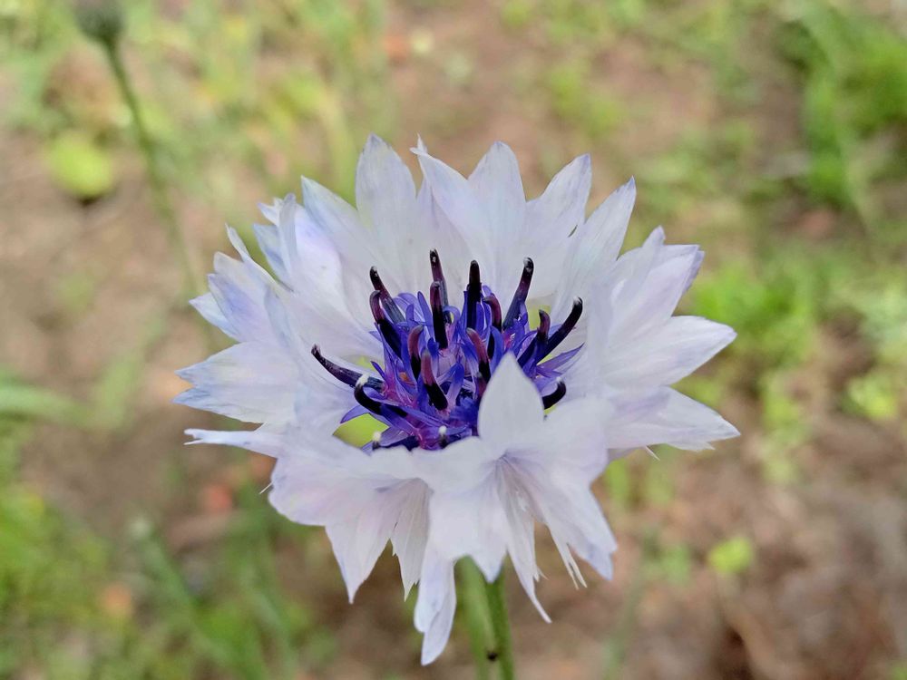 畑で🌿あまり見かけない色のヤグルマギクを見付けました🎶