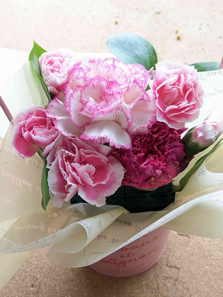 せめてカーネーションだけでも…自分にご褒美(≧∇≦)b 可愛いピンク系でしょ