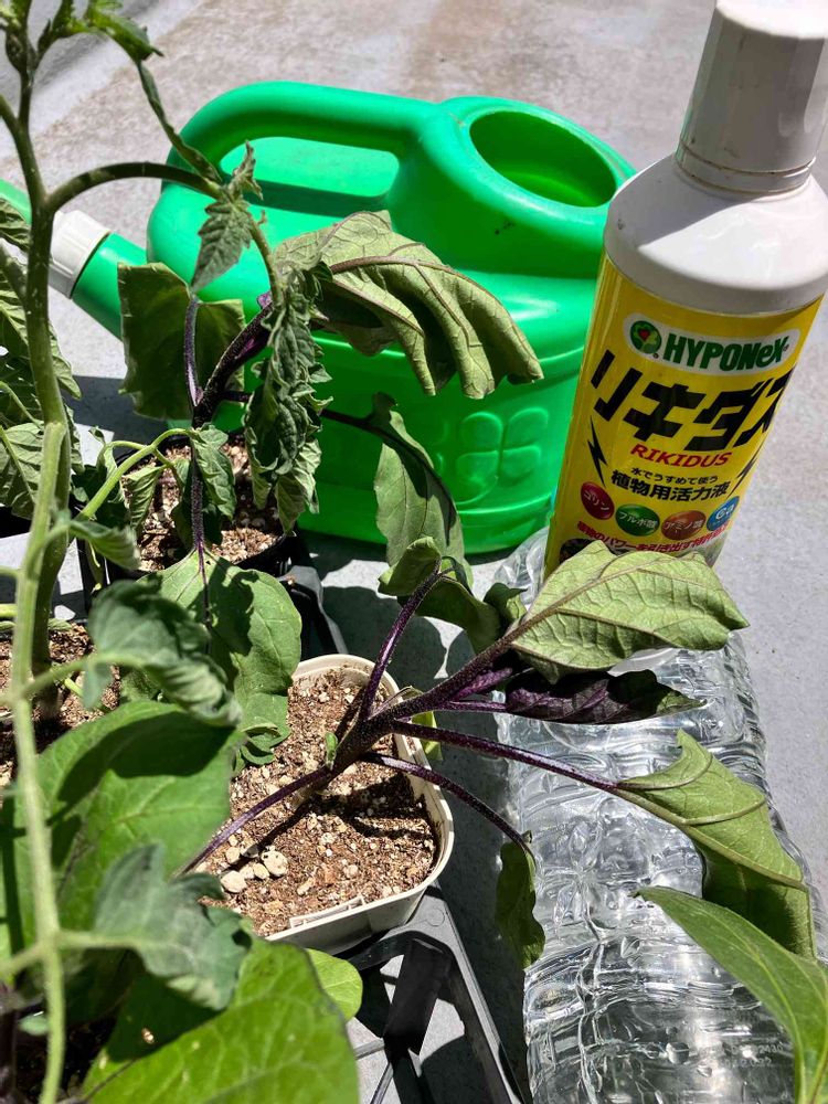 午前中、ベランダを見たら🍆🍅がヒエェー😱