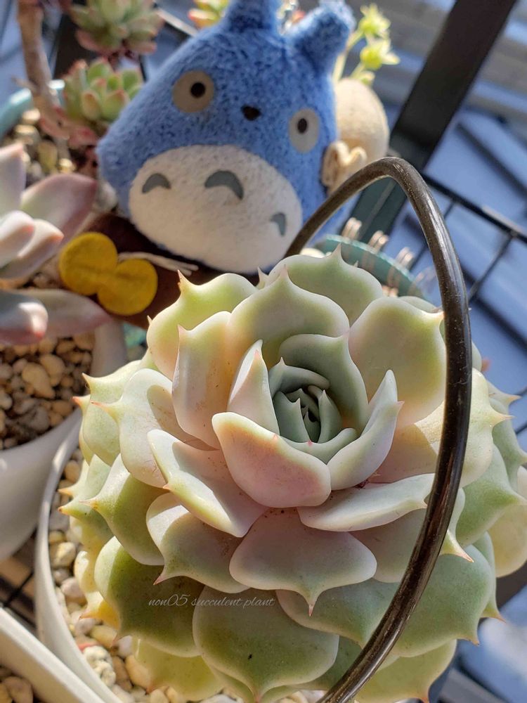 わぁ(*ฅ́˘ฅ̀*)♡ノンさんちのローラさんは美人さんだね〜💕やわらかいブルーグリーンとクリーム色 ピンクが混ざって なんとも言えないステキな色💕うちのはどうだっけ?と思って見てきたけどブルーグリーン1色だったよ(*≧∀≦*)