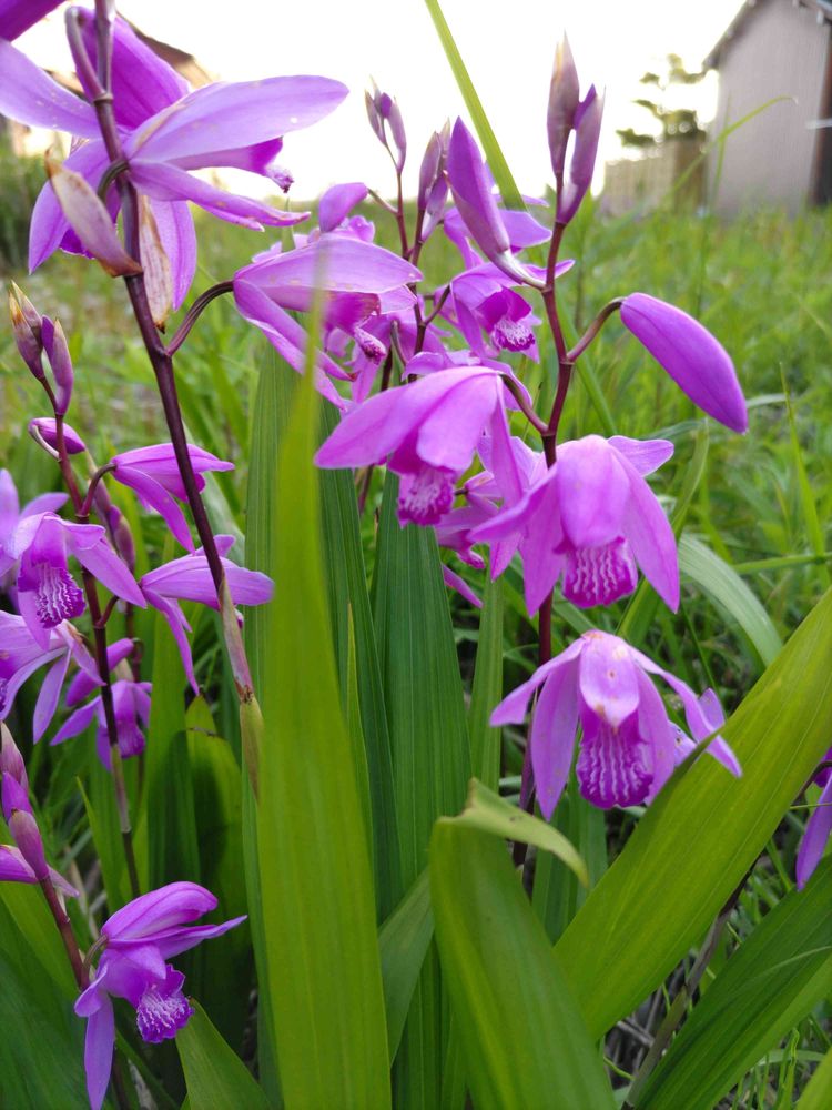 空き地で咲いているシランの花😆家のより茎が太いのはなぜですか❔