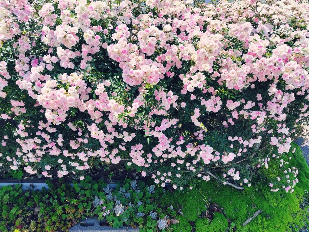 フェンスに這わせたつるバラが今年も綺麗に咲きました✨
