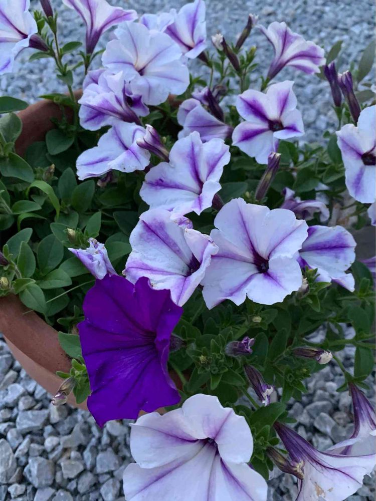 去年サントリーさんから頂いたるりいろ風ぐるま、今年も咲きました❣️それがなんと一つだけど紫色の花が咲きました💦