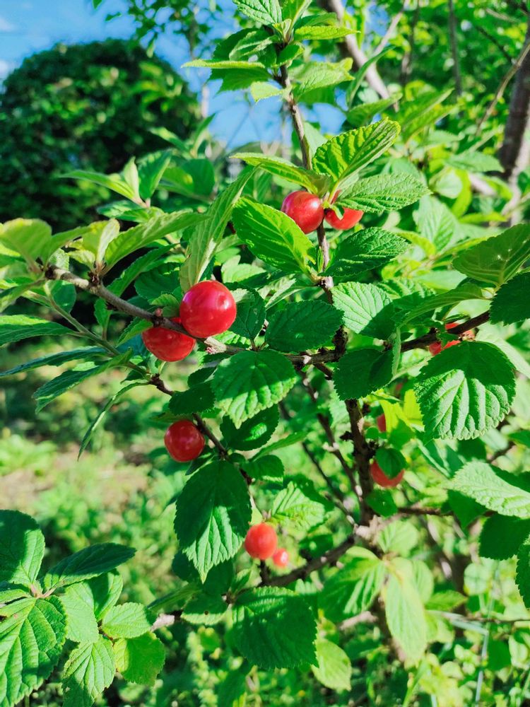 ユスラウメもツヤツヤのルビーみたいに色付いて食べ頃です😍