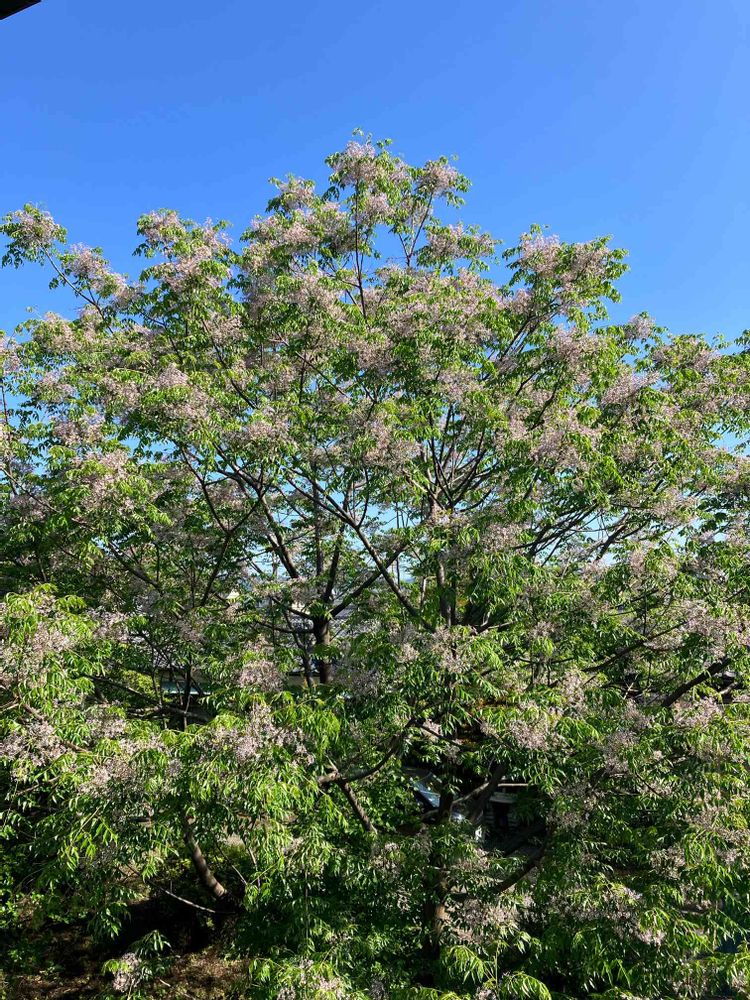 今日は朝からよく晴れて☀️、裏のお宅のセンダンの木が、青空に向かって気持ち良さそうに枝をのばしていました🍃🌳