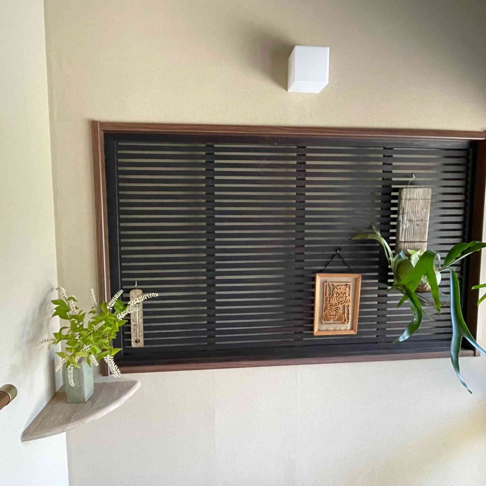 今年、築140年の我が家をリフォームしました😊玄関にあった古い格子を棟梁がうまく外して玄関のアクセントにしてくれました♪小さな花台もつけてもらいました。