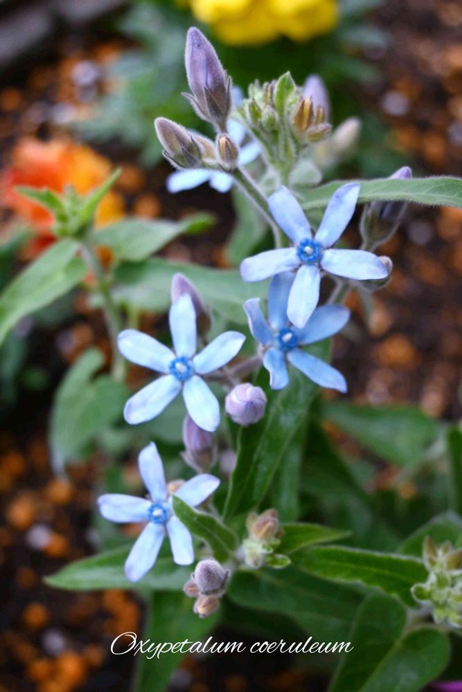 水色のオキシペタラムの花が可愛いですね、大好きなお花です、蕾も紫色で可愛いですね😍