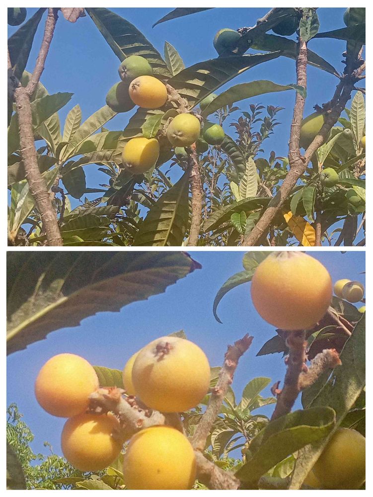 畑の脇に生えた山のビワだいぶ色づきました もうすぐ食べられます❤️🎵