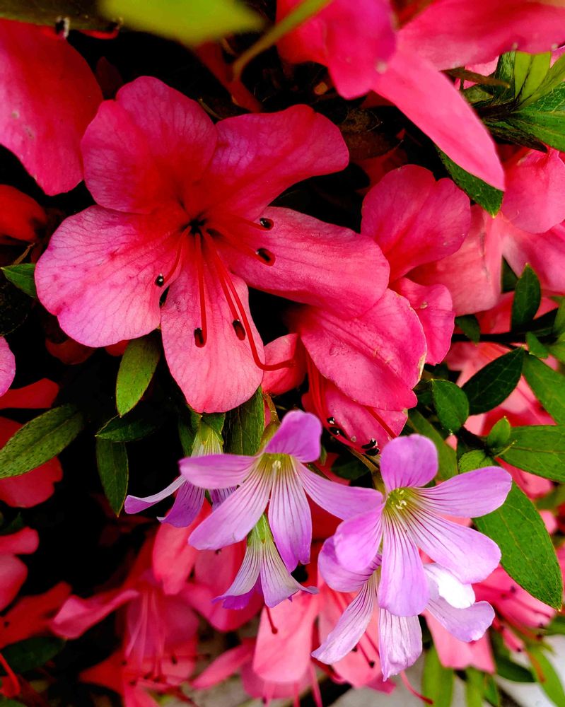 サツキの間からムラサキカタバミがちょこんと顔を出して、可愛らしいですね🥰