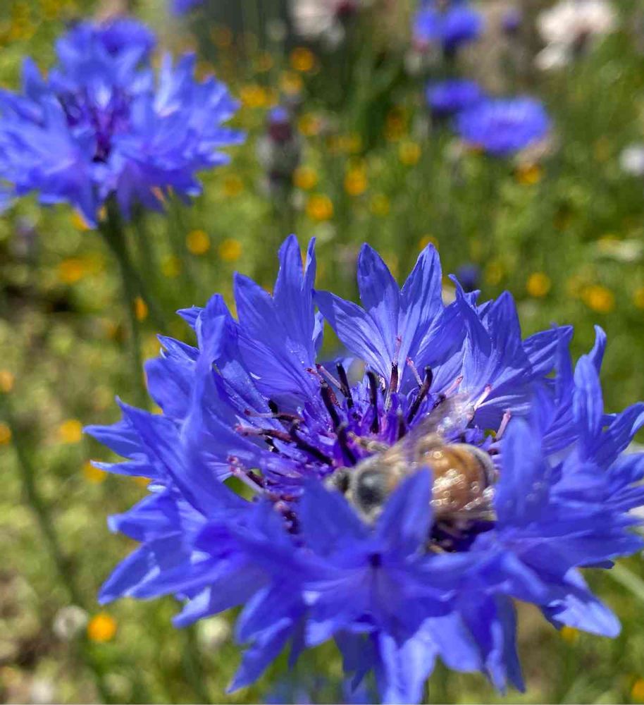 ヤグルマギクの中に お客様。お仕事頑張ってます🐝