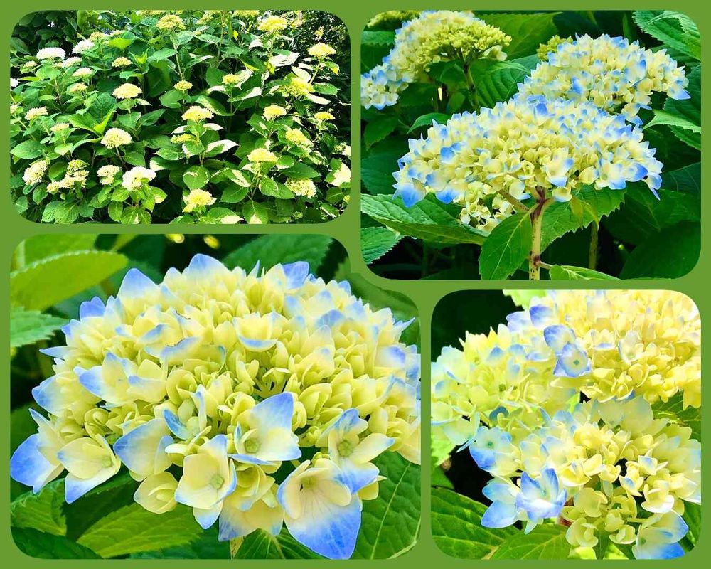 今日の2枚目は少しずつ色づき始めた花壇の紫陽花です🤗💙🩵💙💚💚
