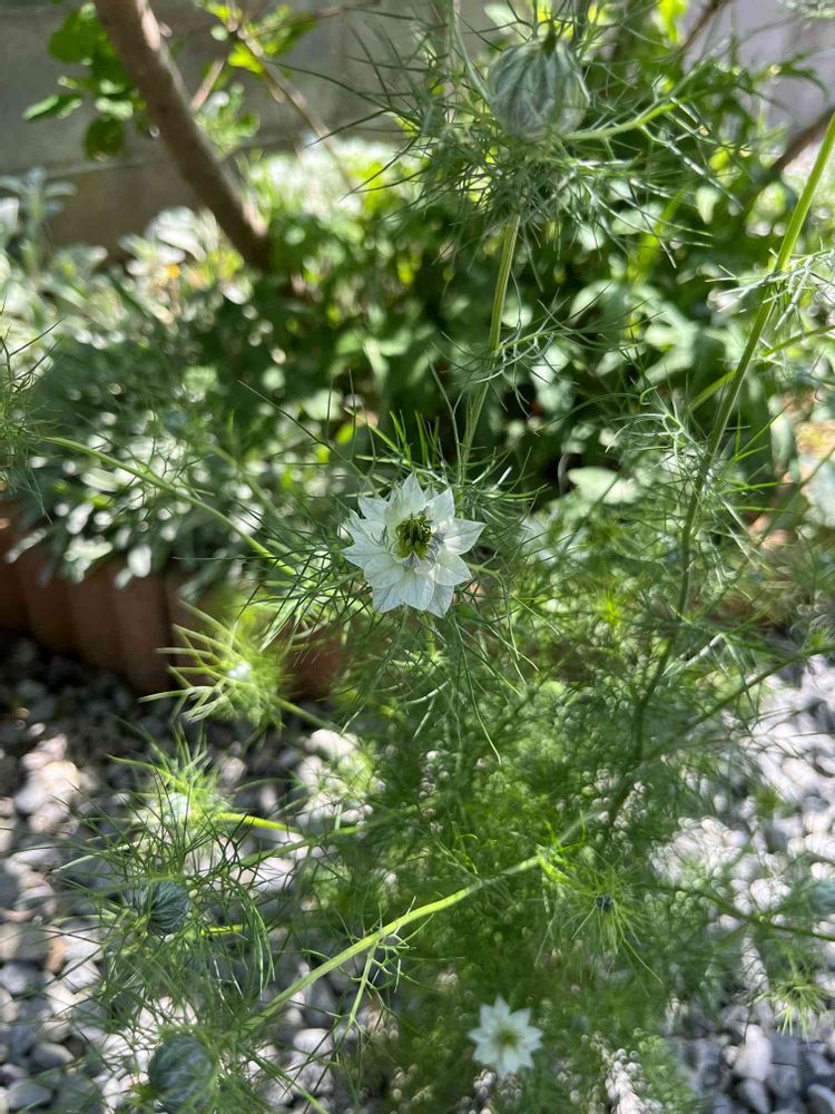 ニゲラはどこにでもあるイメージでまじまじと見ることが無かったけど、こんなに可愛い花を毎年咲かせてたんやな〜としみじみ。