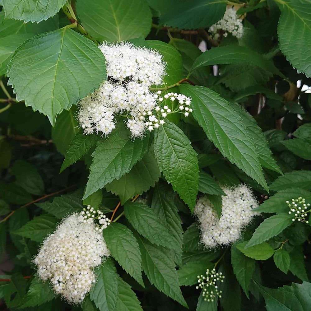 シロバナシモツケが狭い庭に大きくなって咲いています😅